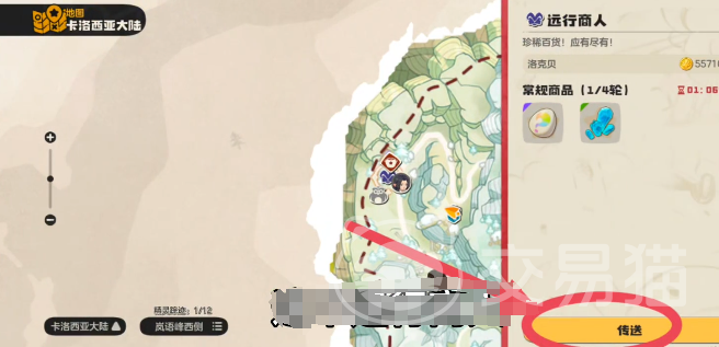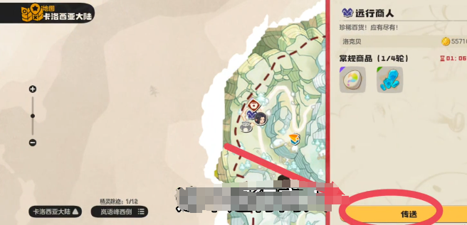 第二处为“远行商人专属商店”,定位逻辑清晰且交互极简。玩家仅需打开游戏内置小地图,即可在地图边缘区域发现带有驼铃图标的NPC标记;点击该标识旁的“瞬移”按钮,系统将自动完成场景传送,全程无需手动移动或记忆坐标。该商店采用结构化刷新机制:每日固定更新4轮商品列表,每轮持续约6小时,覆盖时段为0:00、6:00、12:00、18:00(服务器时间)。商品类型高度聚焦开荒刚需,包括但不限于:宠物经验药剂、技能学习书、体力恢复晶核、装备强化粉尘等关键消耗品。