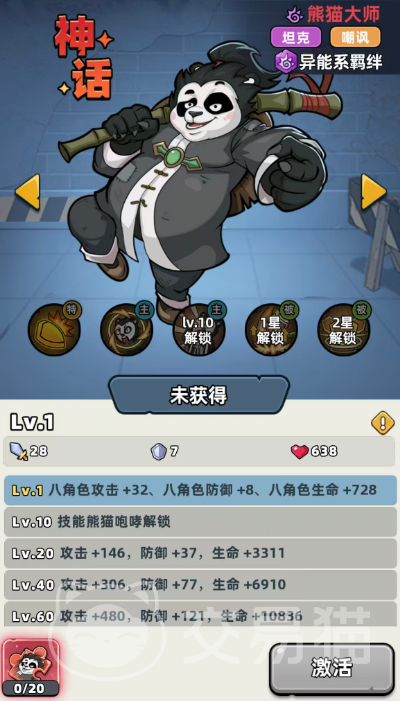 首位推荐的是熊猫大师。该角色虽属坦克职业,但具备可观的群体输出潜力——其主动技能基础倍率高达240%,且附带异能易伤效果,可显著提升全队异能伤害转化效率。在队伍配置上,他与机甲战士、艾达等异能输出角色协同性极强。被动方面,熊猫大师拥有场景化减伤机制,并支持PVE环境下的稳定承伤表现。值得注意的是,当星级提升至满阶后,其大招可在自身生命低于20%时触发一次50%最大生命值的恢复效果,极大强化了前排容错率。因此,在缺乏专职副C的情况下,他亦可临时承担部分AOE输出职责,但核心定位始终为前排防御中枢。