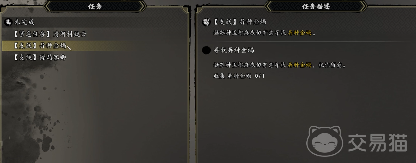 一切始于南疆清河村。完成铁蛋交付的“毒蝎夺命”任务后,必须前往猴儿林左上方洞穴击败守关敌人,取得【异种金蝎】。此道具为关键分歧点——其交付对象直接决定后续人面鬼蛛的解锁方式:若交予商人,将激活霹雳门相关支线,并在与门主汤统对话时获得明确指引;若交予柳医生,则转向五仙教方向,通过另一NPC引出同名任务。两条路线奖励类型不同(拳法/剑法),但均能通向人面鬼蛛,且无优劣之分,仅需确保该交接动作完成。
