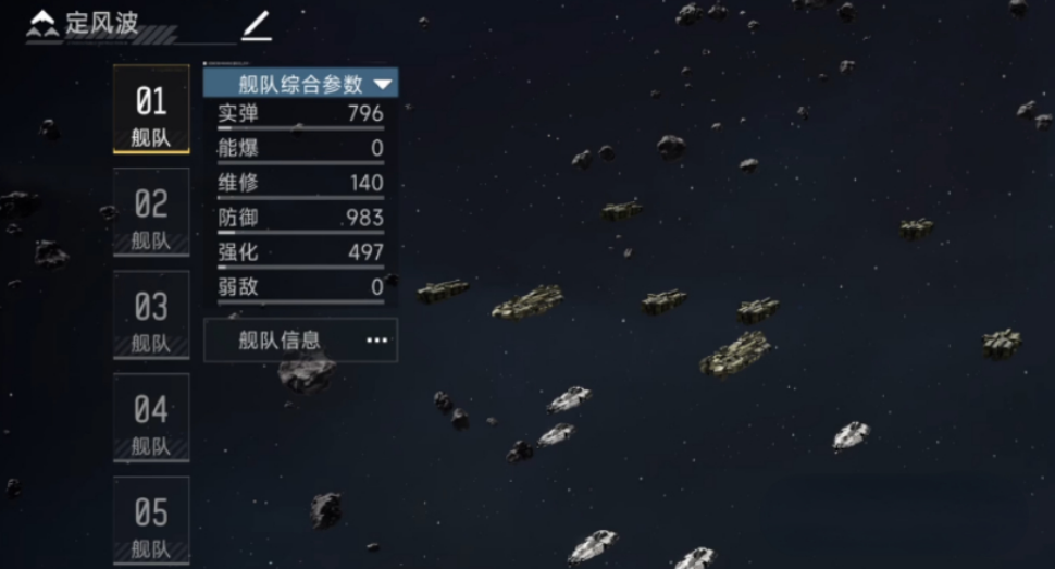 “定风波”在整支舰队体系中定位清晰:标准多用途护卫舰。其核心职能是伴随主力战舰行动,执行贴身防御、火力掩护与战术支援任务。实战中,它常部署于编队外围或主舰侧翼,承担第一道拦截防线。因此,提升续航能力应列为优先方向——更高的能量储备与护盾恢复效率,可显著延长其在高强度关卡中的持续作战时间,间接保障主力输出单位的生存窗口。
