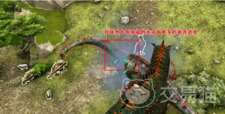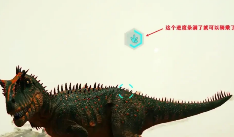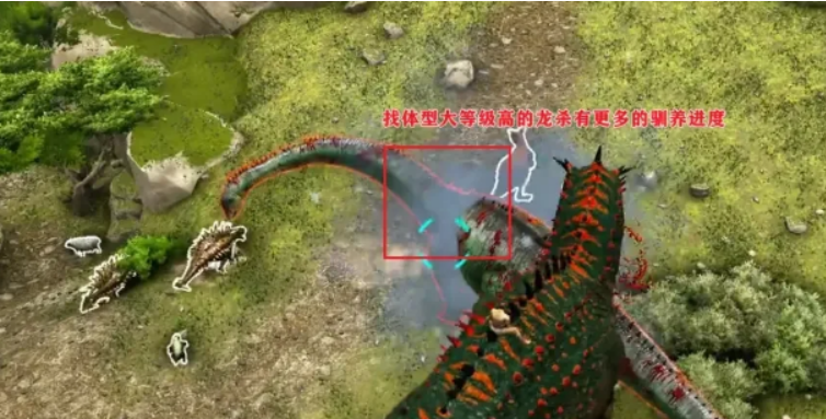 抵达目标区域后,切勿直接接近。优先在安全距离外猎杀一只中型食草恐龙,确保尸体无严重破损。拾取后保持低移动速度,逐步将尸体移至鲨齿龙附近约15–20米范围内,等待其自主靠近并开始进食。此时UI界面将显示驯服进度条,每次成功投喂可推进约20%–30%进度。