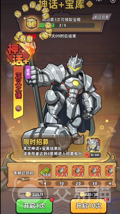 游戏中角色体系采用多阶分级设计,涵盖普通、稀有、史诗及神话四个品质层级。死亡骑士位列神话级,核心定位为高耐久型前排坦克,拥有全角色中顶尖的防御属性与承伤能力。其获取方式限定于“神话加宝库”限时招募活动:玩家需完成指定次数的招募任务以积累宝箱资源;每开启一定数量宝箱可获得对应角色碎片,集齐全部碎片后即可激活该角色。该机制不开放直接抽取,强调过程参与与资源规划。