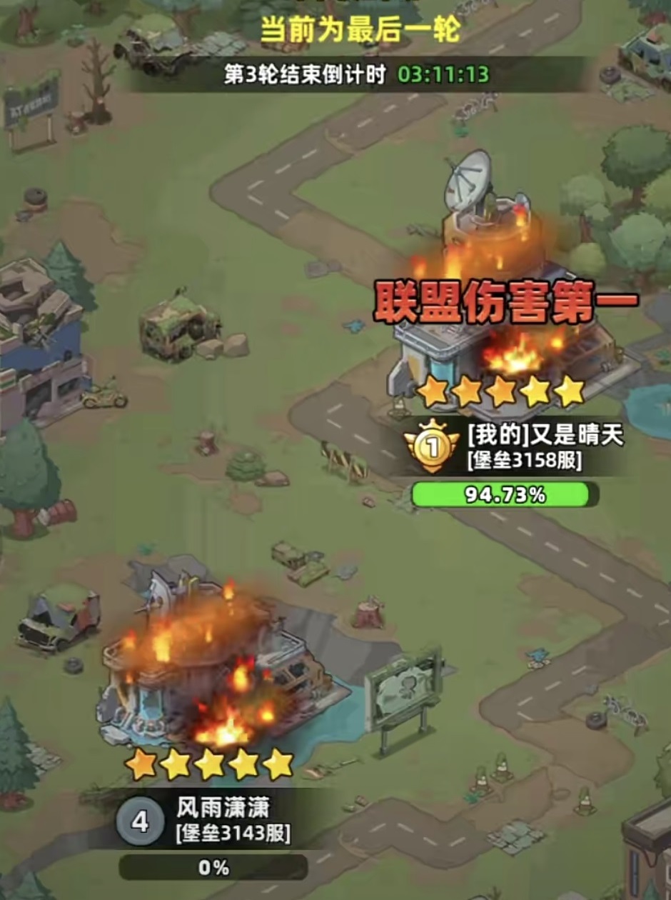 活动全程持续5个自然日,各阶段积分权重逐级提升——初赛占比最低,高赛权重最高,因此后期战局直接影响联盟能否跻身前列。每日上午10点开启当轮匹配,系统将锁定所有成员实时战力值,并将其直接转化为本次进攻伤害数值。城池总血量由联盟当前总战力叠加建筑等级加成共同决定,每轮开始前重新锁定。战斗设有单次攻击歼敌上限,单人输出存在明显天花板,必须依赖全盟高频协同推进。战术层面存在一个实用技巧:报名截止前,全体成员主动卸下装备以临时压低战力,从而匹配实力偏弱的对手;匹配确认后立即重装强化,最大化单位时间输出效率。