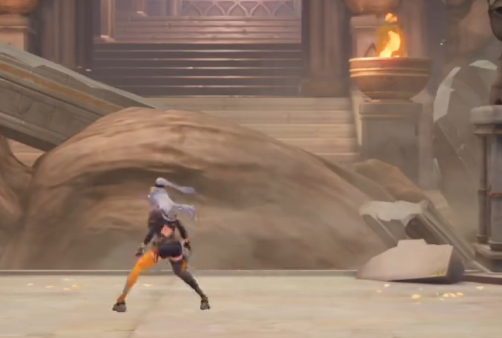 建议优先通过横向位移熟悉角色移动手感;若操作响应存在延迟或方向不适配,可在“设置—操作”中调节摇杆灵敏度与按键布局。完成适应后向右推进,在木桥区域会触发结构坍塌事件,此时需使用二段跳越过断口——该机制要求角色必须抵达平台边缘才能触发跳跃判定,存在一定操作容错门槛。后续关卡引入冲锋跳机制,空中按住冲刺键即可向前突进,相较前一机制更易掌握,能有效提升平台跨越效率。