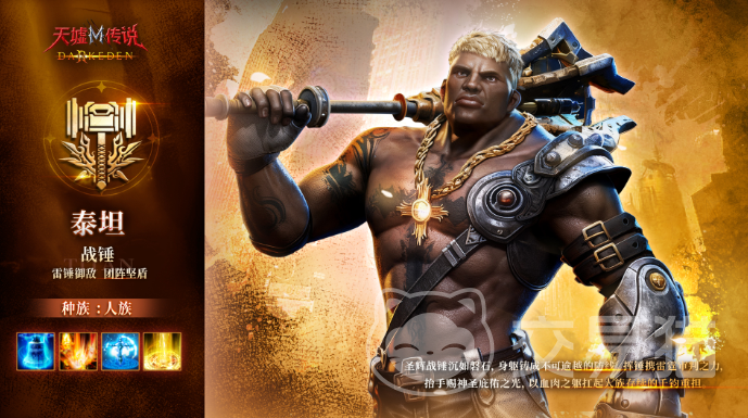 人族防御向职业泰坦以战锤为标志性武器,主打前排承伤与团队增益。除高额基础生命与物理防御外,其“神圣祝福”技能可提供范围减伤与持续回血效果。大招无需消耗大量法力值,冷却可控,适合高频次开团使用。新手玩家需优先堆叠防御属性与韧性,并熟练运用嘲讽技能建立仇恨链,确保团队阵型稳定性。该职业强依赖队友配合,单兵作战能力有限但团队容错率极高。