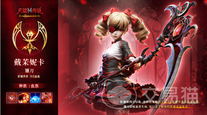 血族近战持续输出职业黛茉妮卡以镰刀为武器,主打高速连击与印记叠加。每次攻击可触发“折磨印记”,随层数累积提升真实伤害比例,并在满层时触发高额暴击斩杀。其移动中施法机制允许在高机动状态下维持输出,PVP中收割残血目标效率极佳。该职业需注重暴击率与暴击伤害协同堆叠,技能循环依赖流畅连段衔接。