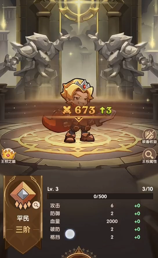 角色本体成长方面,经验材料与突破材料应优先投入主C或核心辅助角色。所有培养行为均直接提升生命值、攻击力及基础属性,且随等级提升开放段位晋升系统:初始为平民段位,后续可依次晋升为骑士、王国、帝国、圣域等更高层级,每阶段解锁专属加成、功能权限与外观标识。
