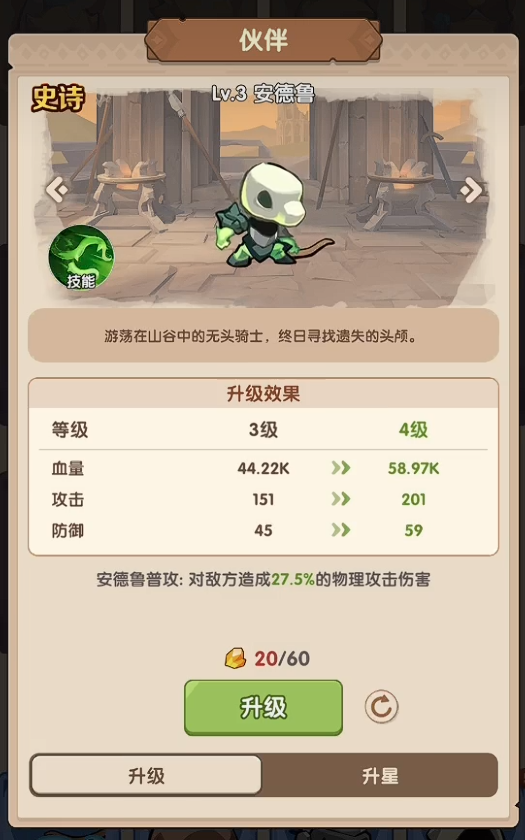 其中,安德鲁承担关键输出职责:其弓箭附带额外元素伤害,在面对具有属性弱点的精英Boss时具备显著压制效果,建议优先投入资源提升等级与技能等级。其余三位伙伴在基础强度上较为均衡,培养策略应侧重资源集约化——通常集中强化两名主力即可,推荐首选宾克,因其获取概率较高,升星难度低,长期培养成本更可控。