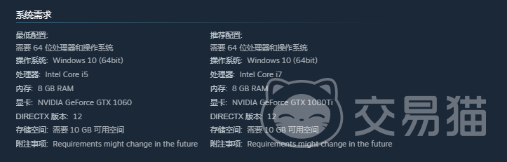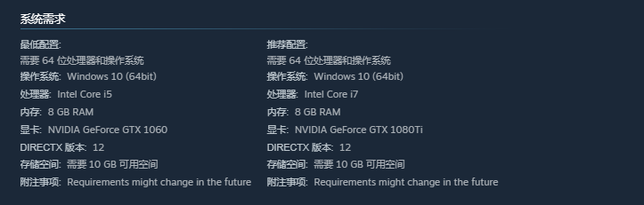运行本作的基础门槛明确:必须使用64位处理器,且操作系统需为Windows 10(最低配置与推荐配置均以此为前提)。该系统版本在驱动兼容性、后台资源调度及安全机制方面具备较强稳定性,可有效支撑游戏持续运行。CPU方面,最低规格需满足基础指令集支持能力;内存则不可低于8GB——这是保障地图加载、角色渲染及物理交互流畅性的基本容量标准。