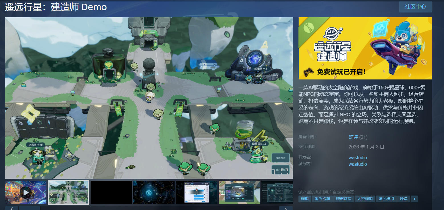 《遥远行星建造师》是一款融合宇宙探索与基地建设的沙盒类游戏,为玩家提供高度自由的星际殖民体验。在开放世界中,玩家不仅能自主设计建筑结构、规划能源系统,还能深度参与资源采集、科技研发与环境适应等多维玩法,充分激发创意表达空间。针对玩家普遍关注的上线信息,目前该游戏DEMO版本已于2026年1月8日正式发布,完整版预计将于2026年内上线。