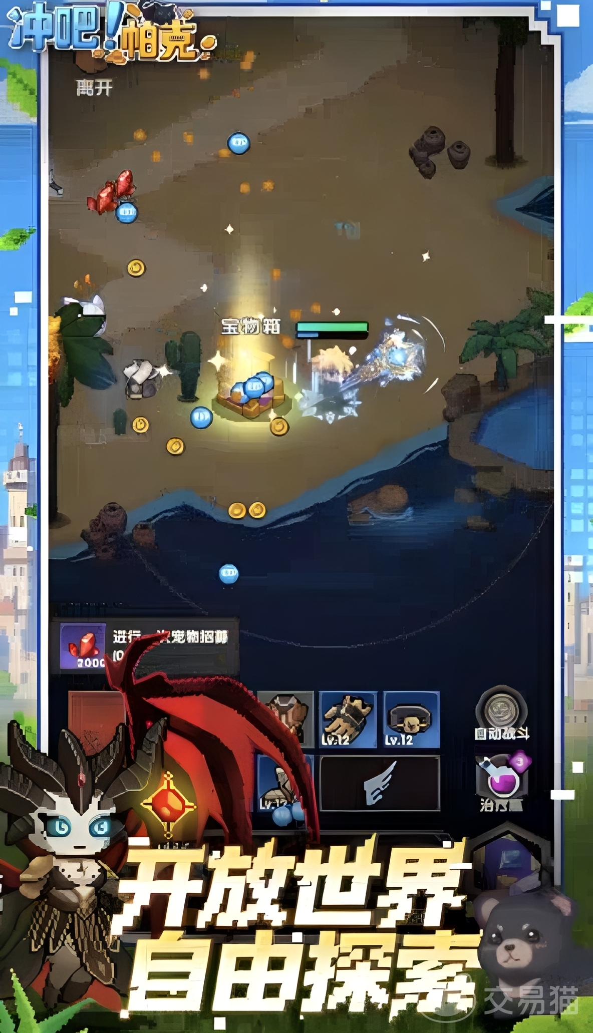 宠物系统具备鲜明视觉辨识度:初始形态为四足生物,随进度推进逐步解锁拟人化像素风伙伴。全系宠物采用复古低多边形+高饱和色彩渲染,细节丰富且风格统一。战斗编队支持“一主二辅”配置——主宠承担主要输出,两只副宠分别提供增益、减益或护盾等协同效果。技能模块总量达数十个,涵盖控制、爆发、续航、反制等多重功能定位,满足差异化战术构建需求。