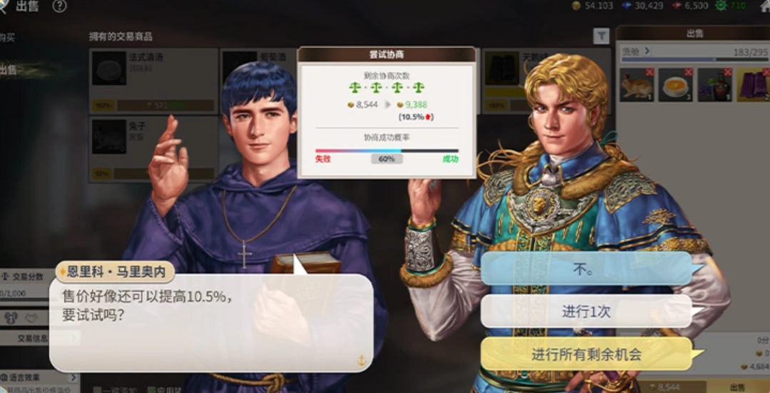 交易结算阶段引入航海士辅助机制:玩家可调用船上航海士执行讲价操作,通过差异化话术选择触发谈判反馈,影响最终成交价。这一设计将数值交易升维为多维度决策过程,既考验市场预判力,也检验临场应变与资源调配能力。