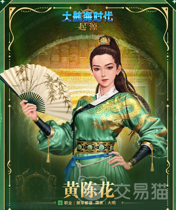 《大航海时代:起源》国服公测期间推出的限定提督角色为黄陈花。作为专为本次公测设计的原创女性指挥官,她是中国服务器首发的本土化提督人物,其背景设定根植于明代航海文化,兼具历史厚重感与游戏策略深度。