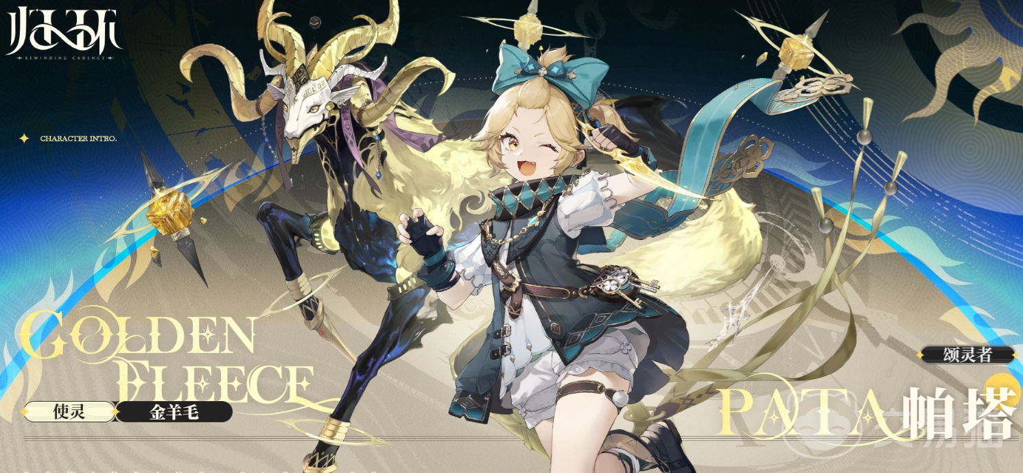 岩属性角色。猎宝团现任团长,常年活跃于遗迹与秘境之间。虽以寻宝为业,但真正所求并非财富本身,而是探索过程中的未知与真相。契约灵体为金羊毛——由人类对宝藏与丰饶的集体执念孕育而成。其头角由纯金铸就,现由猎宝团副团长兼第二位成员代为执掌。