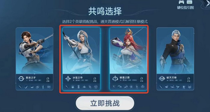 活动支持四名角色选择,推荐优先选用王昭君与伽罗组合。二者属性具备天然克制红buff的机制优势:王昭君开局释放护盾后切换至伽罗,可触发共流技能联动效果,大幅提升输出稳定性。分享通关战绩还可额外预约20颗晶珀资源。