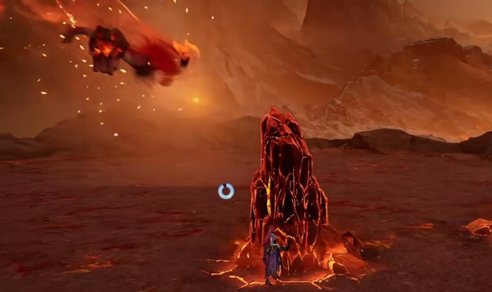 Boss进入飞天阶段后将召唤追踪型陨石,此时应采用横向极限闪避规避落点,注意避免陨石撞击场景柱体引发连锁伤害。陨石雨结束后迅速转移至石柱后方,即可完全规避其大招范围伤害,实现无伤通关。