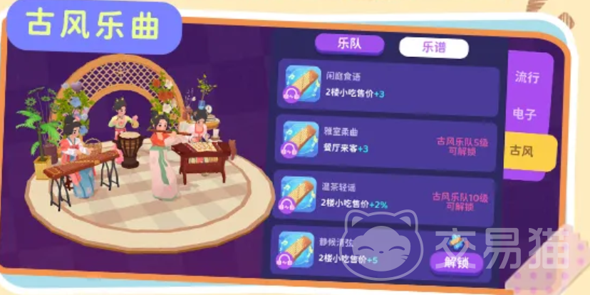婚礼宴会系统全面焕新,支持自由定制舞台布置方案,适配不同主题婚庆场景。乐曲表演模块开放古风、摇滚、电子三大风格选择,每种风格均可编排多首曲目轮播,触发对应属性加成效果,显著提升餐厅综合收益。
