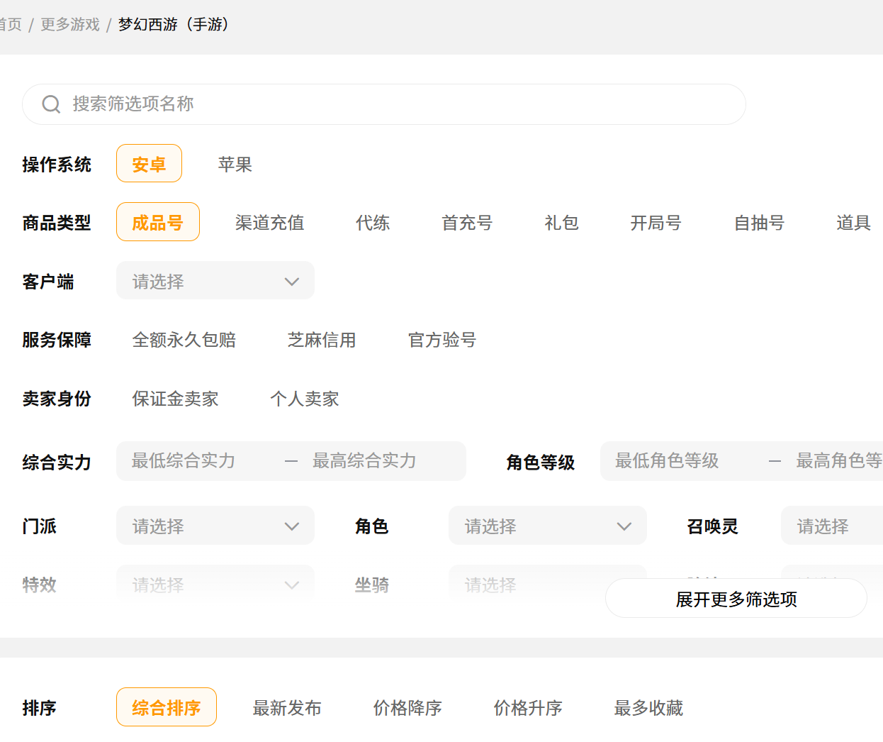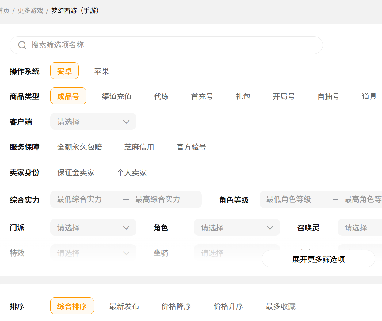交易猫专门为梦幻西游做了独立的交易专区,不管是端游还是手游,官服、渠道服全都覆盖的,账号库存大、类型也全,各种价位和需求的都能找到。平台筛选特别细,可以按照角色等级、门派、宠修、服务器等等精准过滤,不用一页页翻找就能快速锁定目标。