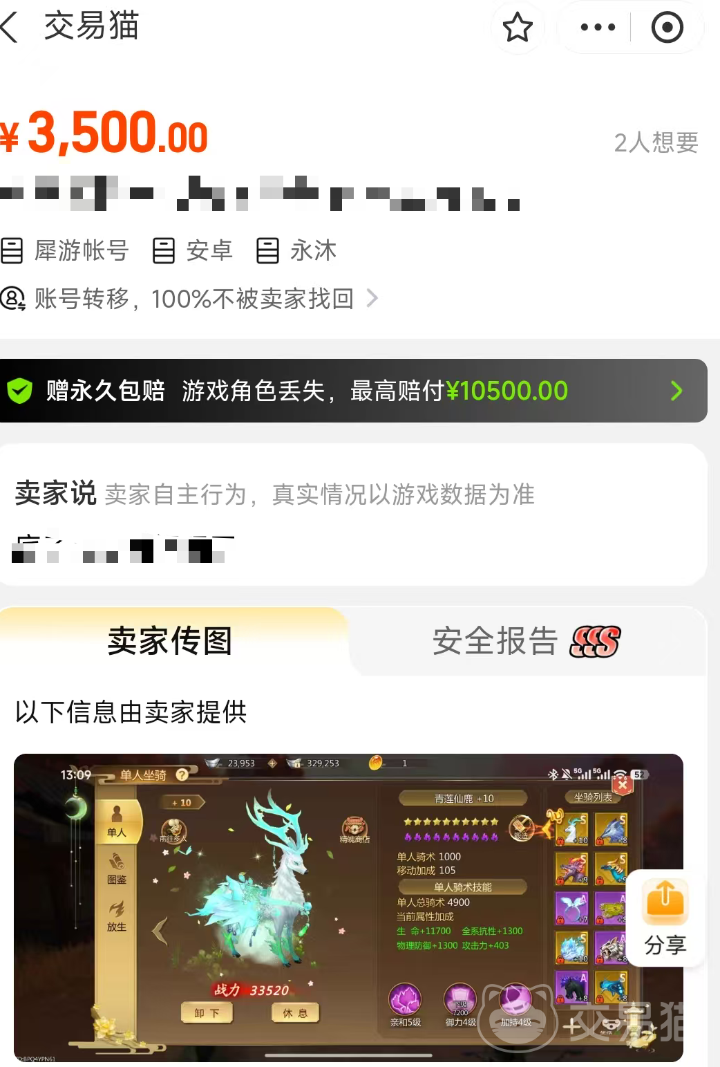 很多玩家在购买蜀门账号以后,其实会担忧安全性的问题,比如说购买账号以后,发现几天以后出现意外丢失,或者是无法的登录情况,感觉受到了很大的欺骗,而这样的安全性问题在交易猫平台是完全杜绝的,因为平台内会赠送一个安心购的服务权益,一旦账号出现特殊情况,官方都会进行全额的赔付,从而双方的权益哦。同时交易猫平台精选真实商品,官方验号服务覆盖超100款热门游戏,验号信息真实完整准确,使用方法也很简单哦,安卓用户点击页面上方按钮即可完成下载,iOS用户可访问交易猫官网直接使用。