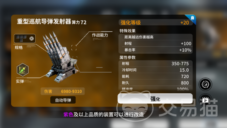 导弹类武器中,【巡航导弹】凭借超远射程构建独特战术优势。在动态变化的太空交战环境中,“超视距打击”成为关键策略之一。巡航导弹拥有775单位射程,可在敌方武器有效覆盖范围外实施安全输出,实现零损伤通关。这一特性不仅是操作灵活性的体现,更是以持久消耗瓦解高战力对手的有效路径,尤其契合偏好位移拉扯、节奏控制型打法的指挥官需求。