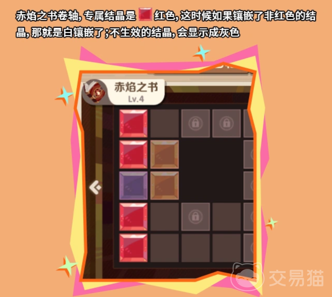 在魔法卷轴体系中,共存在四种基础属性结晶,按颜色与效用严格对应:赤焰结晶(红色)、磐石结晶(橙色)、裂空结晶(蓝色)、流萤结晶(紫色)。四者合计构成4阶结晶结构。镶嵌操作需长按结晶图标使其放大,随后拖入卷轴指定格位。关键限制在于——每类卷轴仅支持唯一颜色结晶生效。例如赤焰之书仅识别赤焰结晶,误嵌其他颜色将导致图标灰化、属性归零,造成资源浪费。