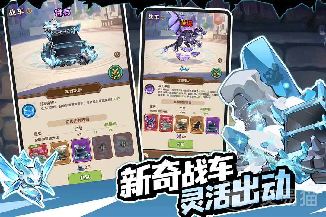游戏构建了多维成长体系,涵盖战车系统(强化防御与机动性)、弓箭手职业树(暴击率、射程、连发等分支进阶)、神器锻造、宠物羁绊四大核心养成模块。所有成长路径均支持自由组合,玩家可根据关卡特性动态调整战术重心——例如面对高攻低防的魔怪集群,可优先提升战车格挡等级;遭遇远程施法单位,则侧重弓箭手穿透属性与减速效果配置。