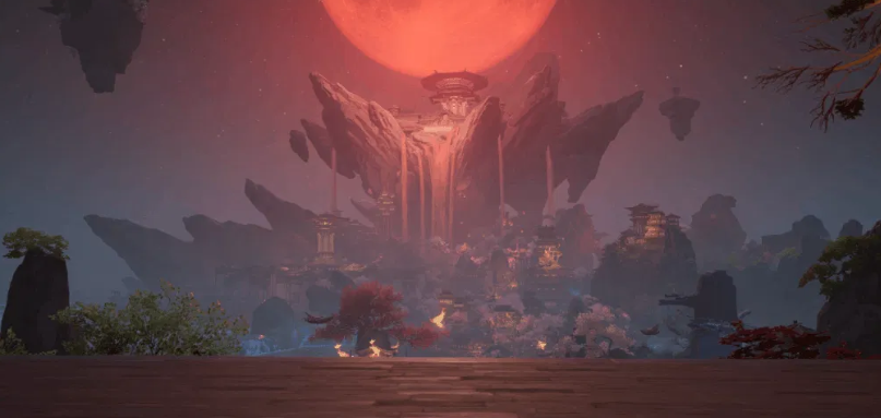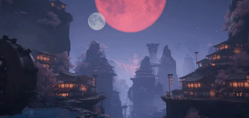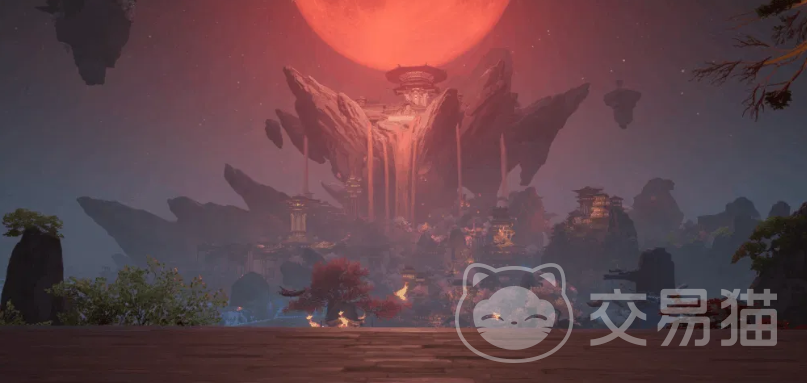 因妖界本无日照,常年幽晦,双瞳结界所化幻月恒悬天穹,成为全域唯一光源。整片区域由此浸润于清冷月华之中,光影流转间尽显诡谲奇境之感,亦奠定了诡市不可复制的视觉基调与空间气质。