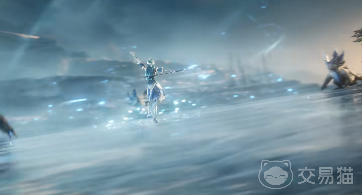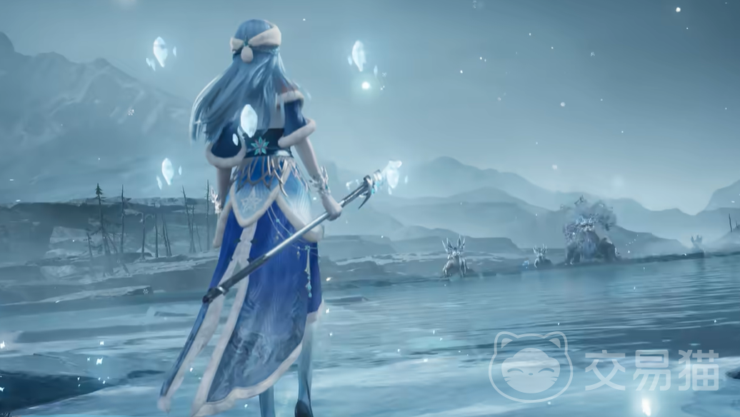 整体设计以冷调蓝白为主色系,汲取古代北方部族文化符号,将冰晶结构、寒梅意象系统性融入服饰、配饰与特效之中。法杖表面浮现流动的霜纹,裙裾随动作轻盈延展,呼应其从外交使节向冰雪主宰的身份跃迁。技能释放时飘散的花瓣并非写实形态,而是凝结为半透明棱面冰晶,在空中短暂悬浮后碎裂消散,强化了“寒境具象化”的沉浸感。这种细节处理既拓展了视觉层次,也暗喻边塞孤寂、家国守望等深层人文主题。