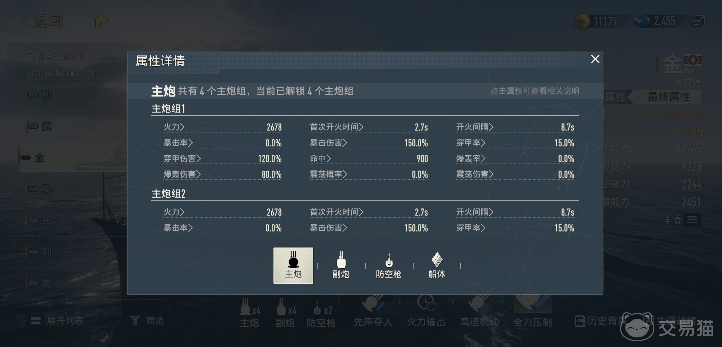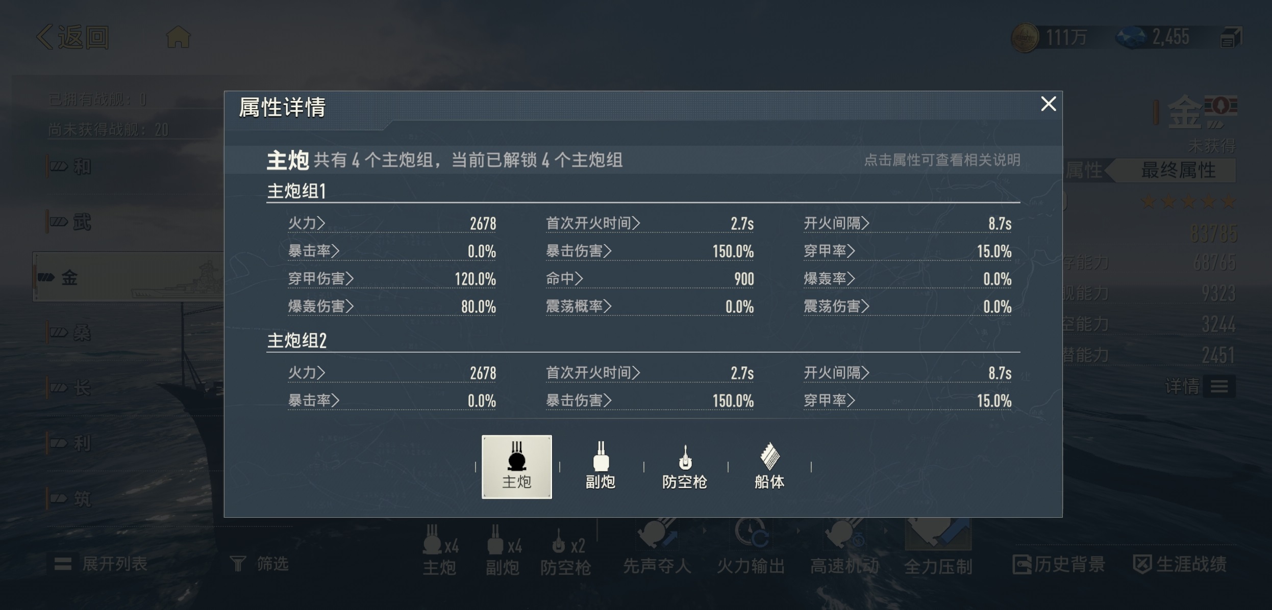 火力配置方面,“金”搭载四座主炮与四座副炮,并配备两座防空机枪。主炮口径优势明显,齐射伤害稳定可观;副炮射速快、转向灵活,专精于清除轻型单位;双防空枪则有效覆盖中低空威胁。机制层面具备多重联动增益:开局前两轮主炮可连续发射,并触发火力强化效果;布阵于后排时,主炮命中率获得额外加成;副炮造成穿甲伤害时,有概率提升主炮穿甲率;主炮成功穿甲后,则有概率进一步提升自身主炮火力并缩短开火间隔;此外,每当敌方任一舰船被击沉,主炮将立即完成装填并进入待发状态。
