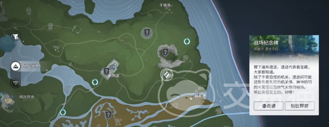 第二站为战场纪念碑。登上碑体所在平台后,找到可旋转机关,按提示方向连续向外转动两圈,机关反馈完成后即可获取第二枚道具。