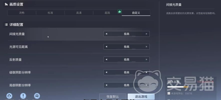 锐化强度控制在10至30区间为宜,过度提升将引发边缘伪影与噪点放大,影响整体观感协调性。间接光照质量建议设为“极高”,阴影等级调至“高”。材质细节、纹理质量与模型精度三项,在硬件条件允许前提下均应启用“最高”档位,以充分呈现角色服饰纹理、环境材质过渡及建模精细度,增强沉浸式视觉体验。