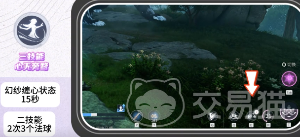 二技能【飞花·掷】为单体投射技,西施向目标方向抛出一枚法球,命中敌人后造成伤害并引发小范围爆炸。该技能每6秒自动恢复1枚法球,最多可储备2枚。法球既是输出载体,也是后续技能联动的基础资源,合理管理法球存量是提升技能命中率与连招流畅度的前提。