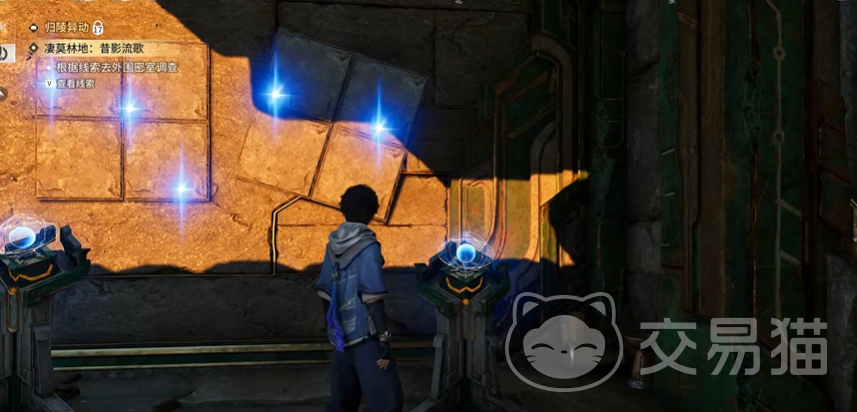 第一枚钥匙碎片获取需进入二层平台。此处设有黄色机关,需调整光路反射路径:首先清除遮挡镜面的藤蔓障碍,推荐使用火属性角色技能或火系道具灼烧清除;随后激活机关,左侧将浮现黄色踏板。此时需牵引附近石块压住该踏板,再次触发机关联动。右侧同理操作另一踏板。最后抵达顶层,重复清除藤蔓并激活顶部黄色机关,完成整套光学谜题后返回平台拾取首枚钥匙碎片。