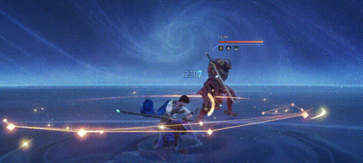 一技能“飞星式”随等级提升解锁多段攻击特性,需先激活对应流脉方可施展,可对前方扇形区域内的多个目标造成高额物理伤害,是团战切入与范围清线的核心手段。二技能“裂空”以高速旋转剑刃形成持续打击,基础形态已具可观AOE输出;进入辉光状态后,该技能伤害获得额外加成,进一步放大持续压制力。三技能“逐星”为位移突进技,常态下完成一次快速冲刺并造成伤害;在辉光加持下将自动追加第二段突进,并使命中的敌人陷入“星削”状态,使其所受来自曜的所有星辰系伤害提升,大幅提升连续击杀效率。