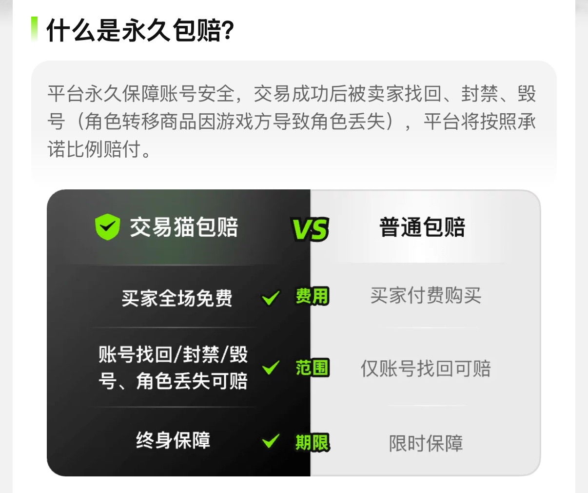 对于买家来说,交易猫能带来真实可靠的账号,前有官方验号严把账号质量关,后有永久包赔解决账号被找回的后顾之忧。每个账号价格都很实惠,还能跟卖家砍价议价,交易起来愉快又放心。遇到不明白的地方随时联系在线客服,简单的问题也可以通过自助快捷入口解决。
