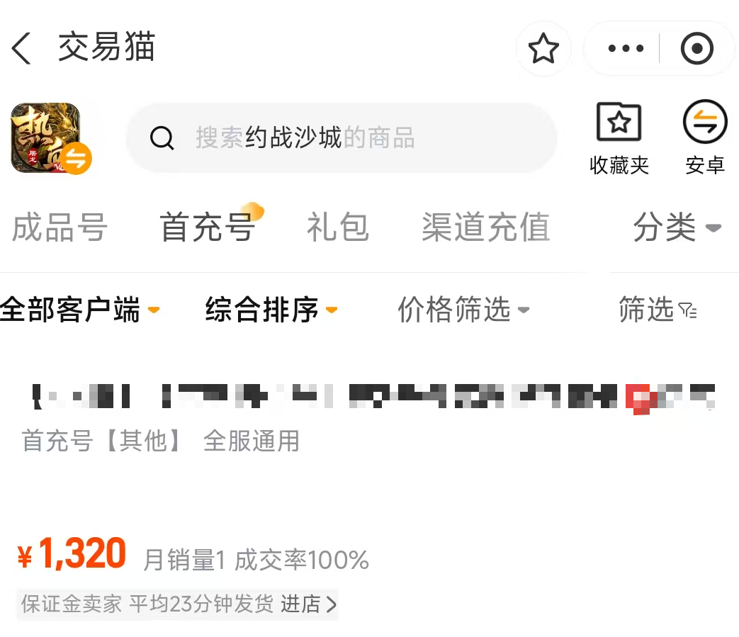 约战沙城的账号整体价值还是比较高的,而且不同职业的培养成本也存在巨大的差别,有一部分新手购买的时候会往往混淆所需要的类型,而交易猫平台则会提供全部的游戏截图,这样玩家们就能清楚地了解到账号的内容,从而避免出现买错的情况,后续交易的时候还有专业的客服进行二次验号哦,同时平台是阿里巴巴灵犀互娱旗下产品,官方大厂背书加持,安全系数拉满,更是业内唯一支持全场永久包赔的交易平台,全方位守护用户交易安全。安卓端用户点击页面顶部按钮,就能快速下载并完成安装,iOS用户直接登录交易猫官方网站,随时随地都能正常使用。