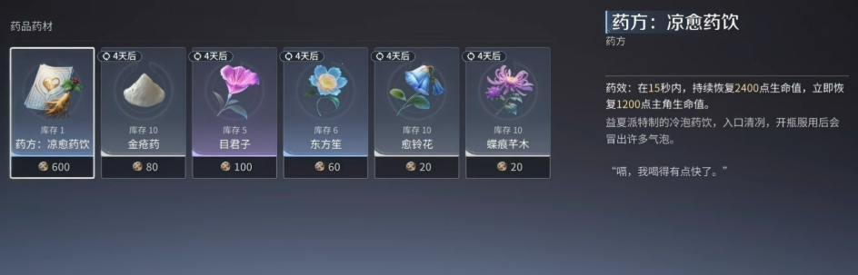 配方获取渠道呈多元化分布:主线任务流程中固定奖励、高难度支线任务结算、秘境探索宝箱随机掉落、城镇商人处直接购置等均为常规来源。药材采集则高度融入开放世界设计——玩家在野外移动过程中,于山坡缓坡、溪流沿岸、瀑布水潭周边等生态特征区域,均可发现动态刷新的可采集植物资源。该机制鼓励玩家在日常任务行进中同步完成资源积累,无需专程刷图即可满足稳定供应。