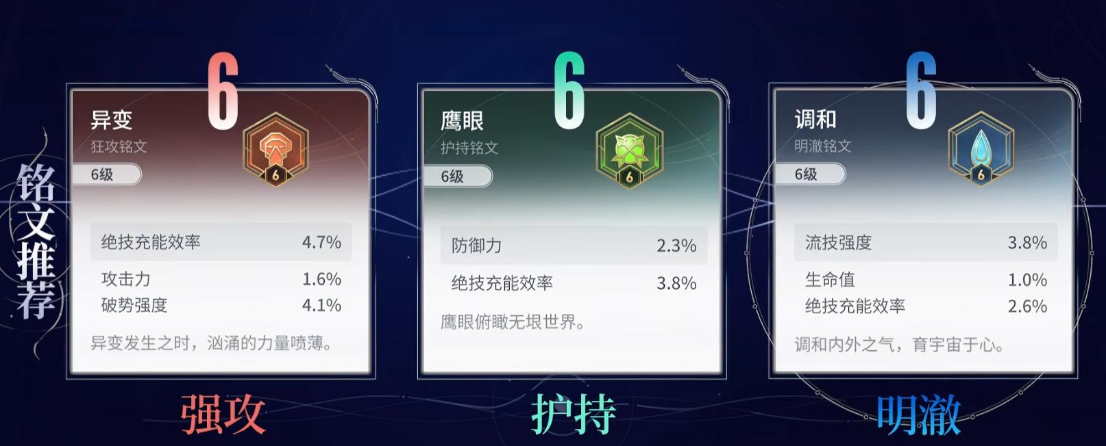推荐配置为6异变、6鹰眼、6调和。该组合聚焦提升大招充能速率,同时兼顾基础攻击属性、生存向生命值及破势强度加成。实战中孙膑无需近身作战,保持中远距离安全站位即可;关键操作在于精准管理爆弹层数与引爆时机——面对高速机动目标,宜优先使用即时引爆快速压低血量;整体节奏应以尽快完成大招充能并切换主C为核心目标,充分发挥其战略辅助定位。