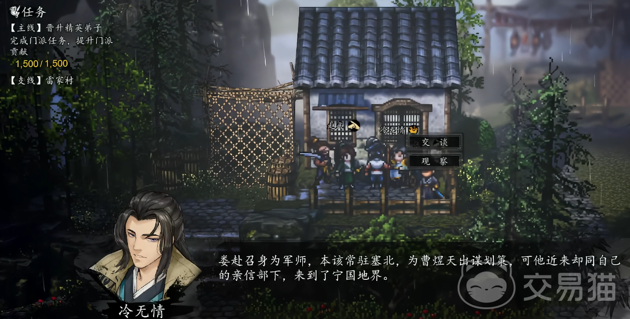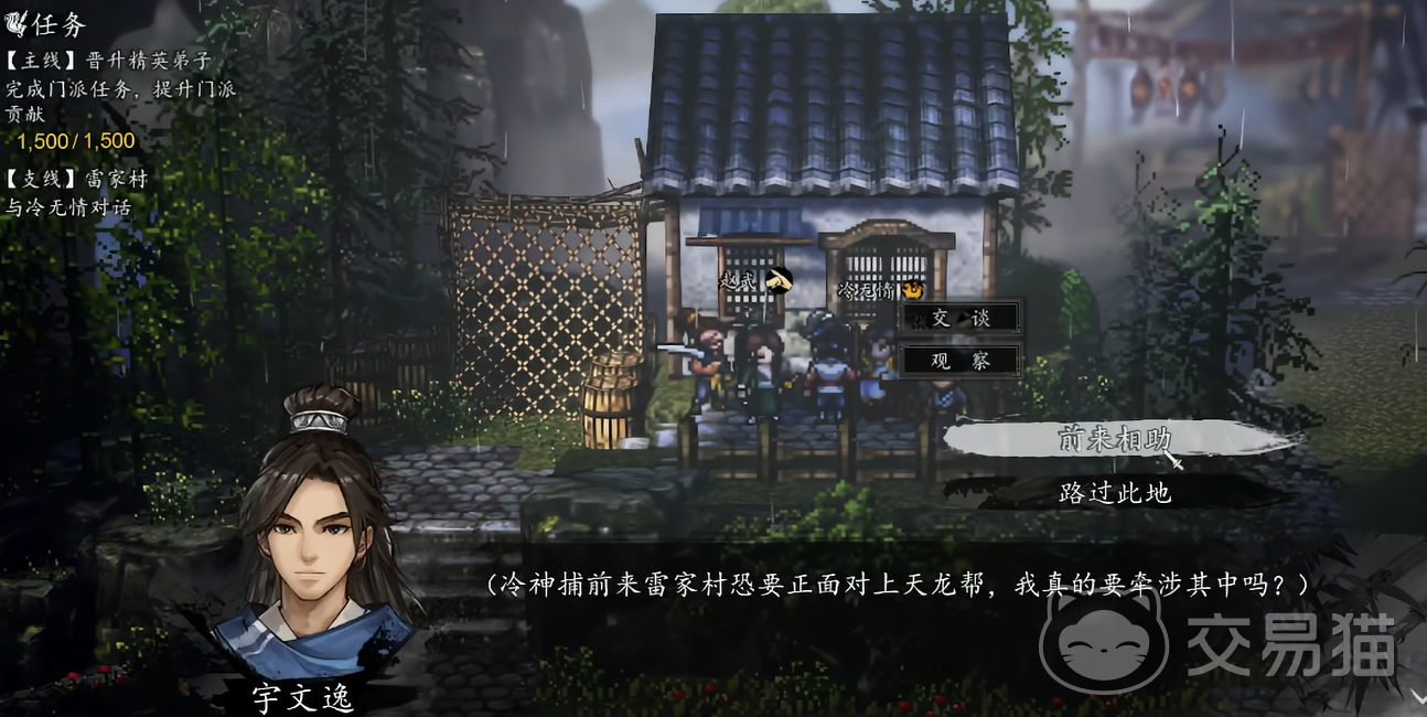抵达雷家村后,靠近冷无情自动播放剧情。对话时选择“前来协助”选项,再与张文、赵武交谈获取背景信息。切勿急于离开,务必与全村所有村民逐一互动,确保无遗漏。完成后向冷无情汇报,任务更新为前往连鼓山,同时冷无情正式加入队伍。此时若尚未与张文、赵武切磋,建议立即补全——可获得实用道具。