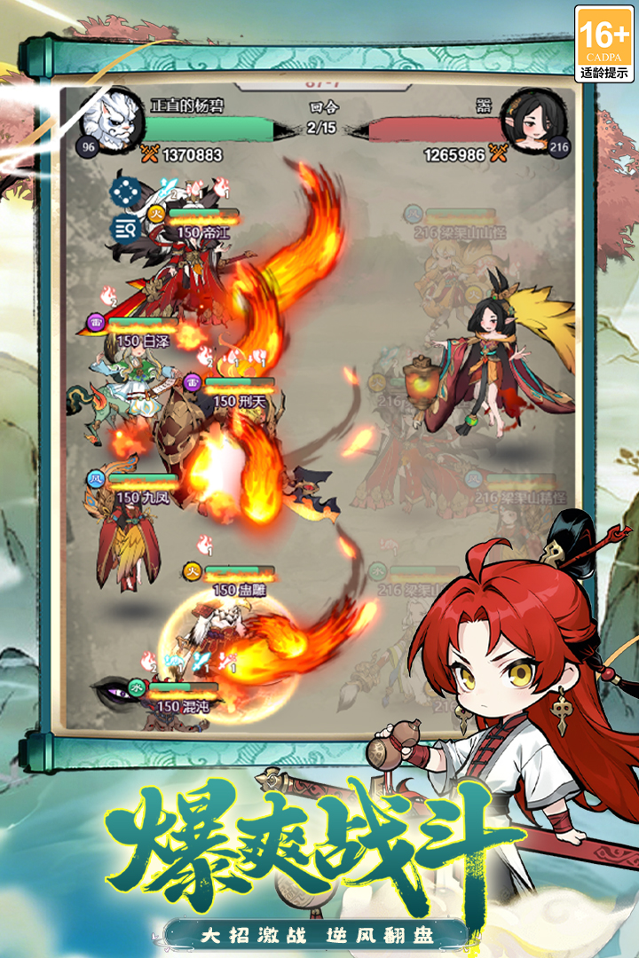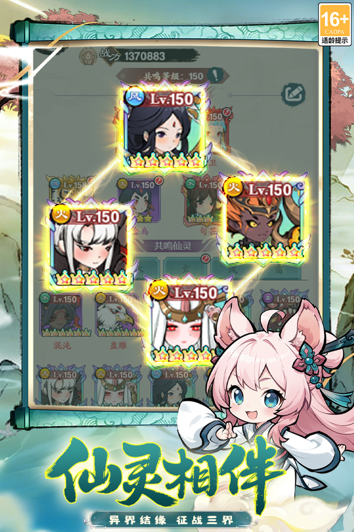 仙灵养成系统采用多维成长路径设计,每位仙灵均配备独立主动技能与差异化被动天赋。如应龙的「烈焰噬心」可对随机4名敌方目标造成伤害并施加「有伤」印记;帝江的「帝鸿鸣斩」则对携带圣盾状态的单位额外生效,成为攻坚高难副本的关键解法。养成维度涵盖等级提升、觉醒进阶、装备锻造等常规模块,资源获取渠道覆盖全图——山海地图中设有大量资源采集点,支持离线挂机持续产出经验、灵韵及稀有养成材料,有效缓解资源压力。