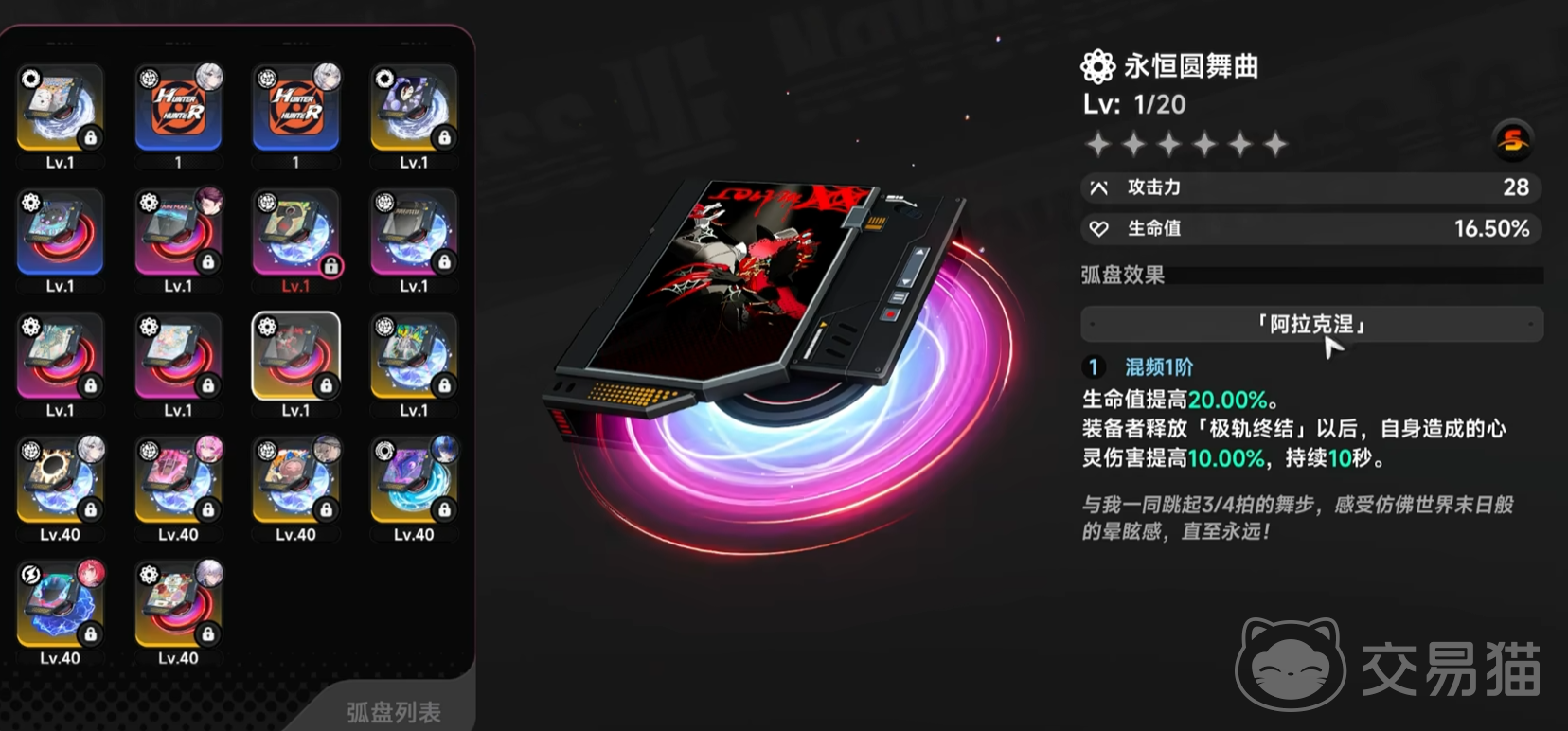 永恒圆舞曲弧盘聚焦生存与持续输出平衡。装备者释放极轨终结时,自身“内心受伤”状态增加10%,但该状态在10秒内不生效。此设计有效缓解高频率终结技使用带来的负面反馈,特别适合武将类依赖终结技打连段、打覆盖率的角色,在保障战斗容错率的同时维持稳定DPS输出。