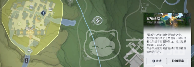 任务起始点位于宏垣残墟区域。建议使用滑板载具提升移动效率,沿东南向小径持续前行。途中需注意地形标识:在路径尽头可见一块显著巨岩,其前方分布若干低威胁野怪。清除后即可与NPC椋尘对话,正式接取【良辰美景】逸事任务。