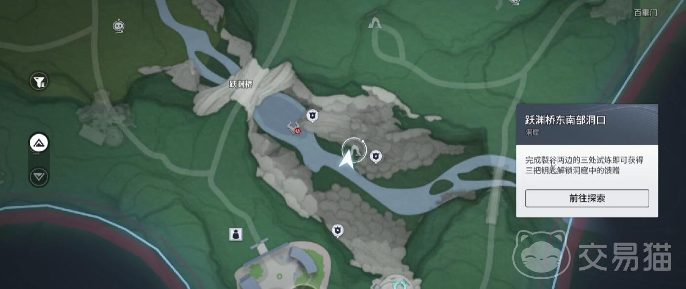 开启试炼的起点位于跃渊桥东南区域,地图上已做清晰标注。玩家可借助传送点快速抵达该位置。到达后会发现一处封闭洞窟,入口被封印,需使用三把钥匙依次解锁。这三把钥匙并非直接掉落,而是分别藏于三处不同机制的试炼关卡之中。唯有逐个通关,才能逐步收集全部钥匙,最终打开洞窟,领取金色凝武奖励。