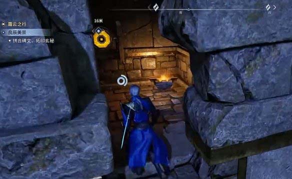 “良辰美景”任务需前往古丘城西北区域的宏垣残墟探秘点,在清剿地狼后与NPC对话开启。任务共分四阶段:首先定位并拾取三处石碑残片(具体坐标已在任务指引中标明),随后完成石碑拓印拼合,激活地窖宝箱;接着传送至溯营地山顶,手动调整游戏内时间为夜晚状态,即可显现“夜晚的餐桌”,食用其上物品即告完成。奖励包含稀有材料包及“良辰美景”成就标识。