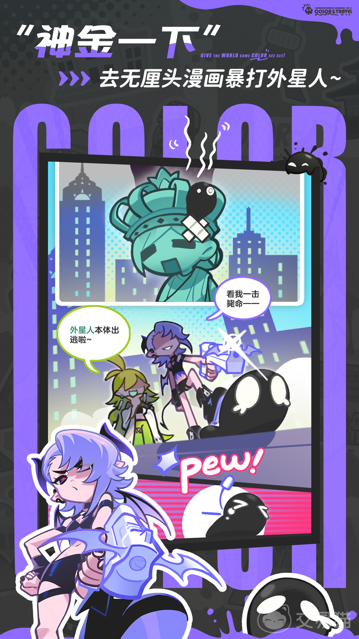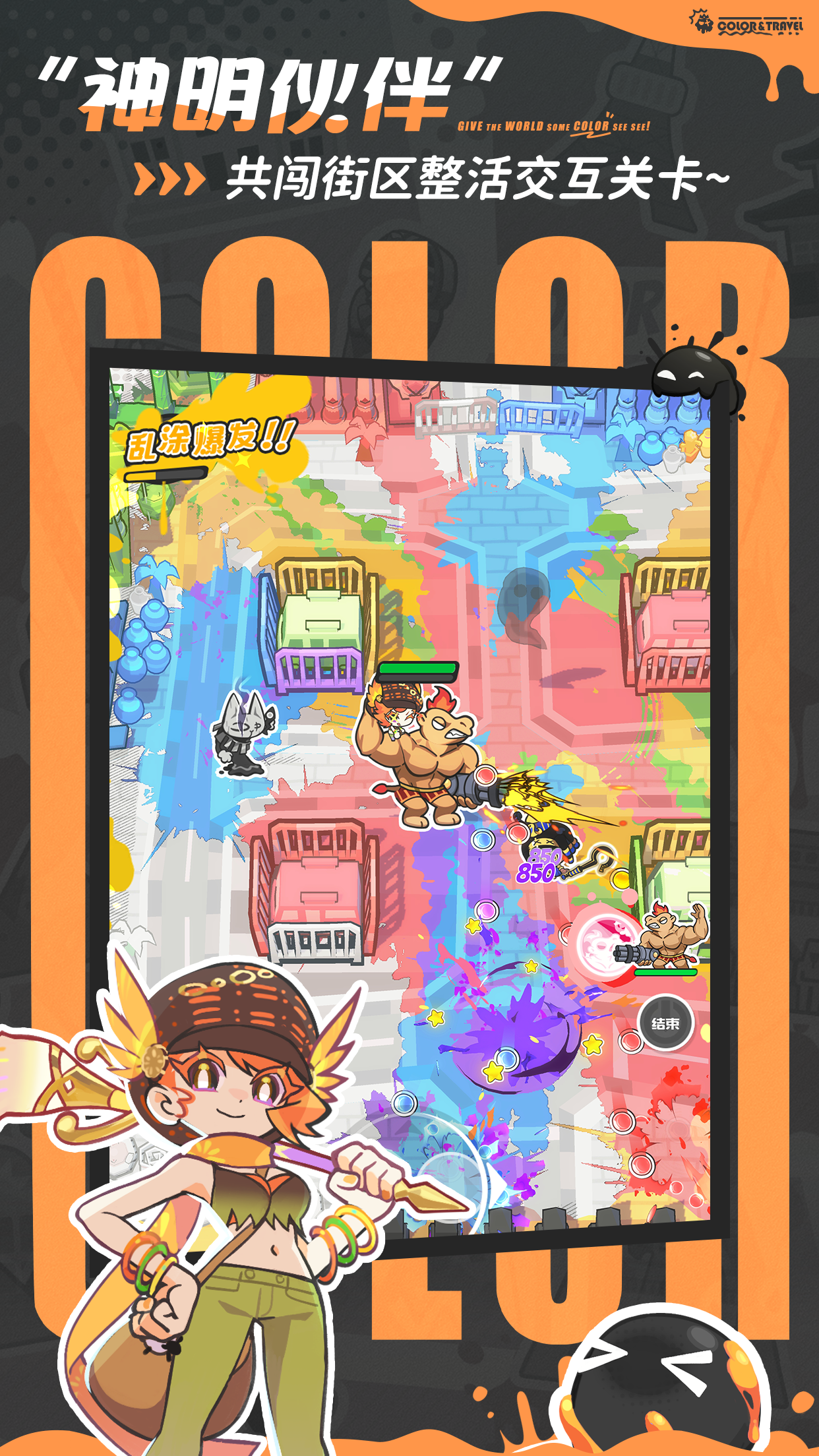 《乱涂彩世界》是一款融合射击与创意涂色玩法的轻量化休闲手游。游戏以“拯救褪色地球”为核心设定——当外星文明悄然抽走全球色彩,世界陷入灰白沉寂,玩家将化身个性鲜明的“染色特工”,携手一支风格迥异却默契十足的涂装小队,手持特制染料武器,在爆笑节奏中击退入侵者、重绘世界万象。