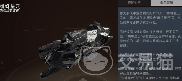 蜘蛛星云被明确设定为网络战驱逐舰,归类于高级战舰序列。当前版本中,该舰仅可通过补给凭证抽取获得,欧气充沛的指挥官有较高概率直接入手。完成解锁后,其基础战力表现优异,具备贯穿游戏全周期的培养价值:前期可独立承担主输出职责,中期逐步转型为战术支援核心,后期则作为体系化作战中不可或缺的护航与干扰节点,持续提供稳定战场控制能力。