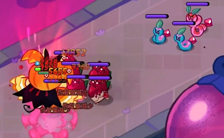 南瓜派的核心机制为召唤类主动技能:可召唤伙伴“皮皮”协同作战。皮皮登场时附带短暂击飞效果,攻击范围覆盖正前方3个目标,并在命中时施加治疗削减效果。该减疗强度高于常规蘑菇饼干,但持续时间略短。技能初始冷却时间为1秒,不受任何冷却缩减类配料影响,这一设定显著提升了技能释放的稳定性与节奏可控性,便于玩家将原本用于压缩冷却的配料槽位替换为其他功能性配置。
