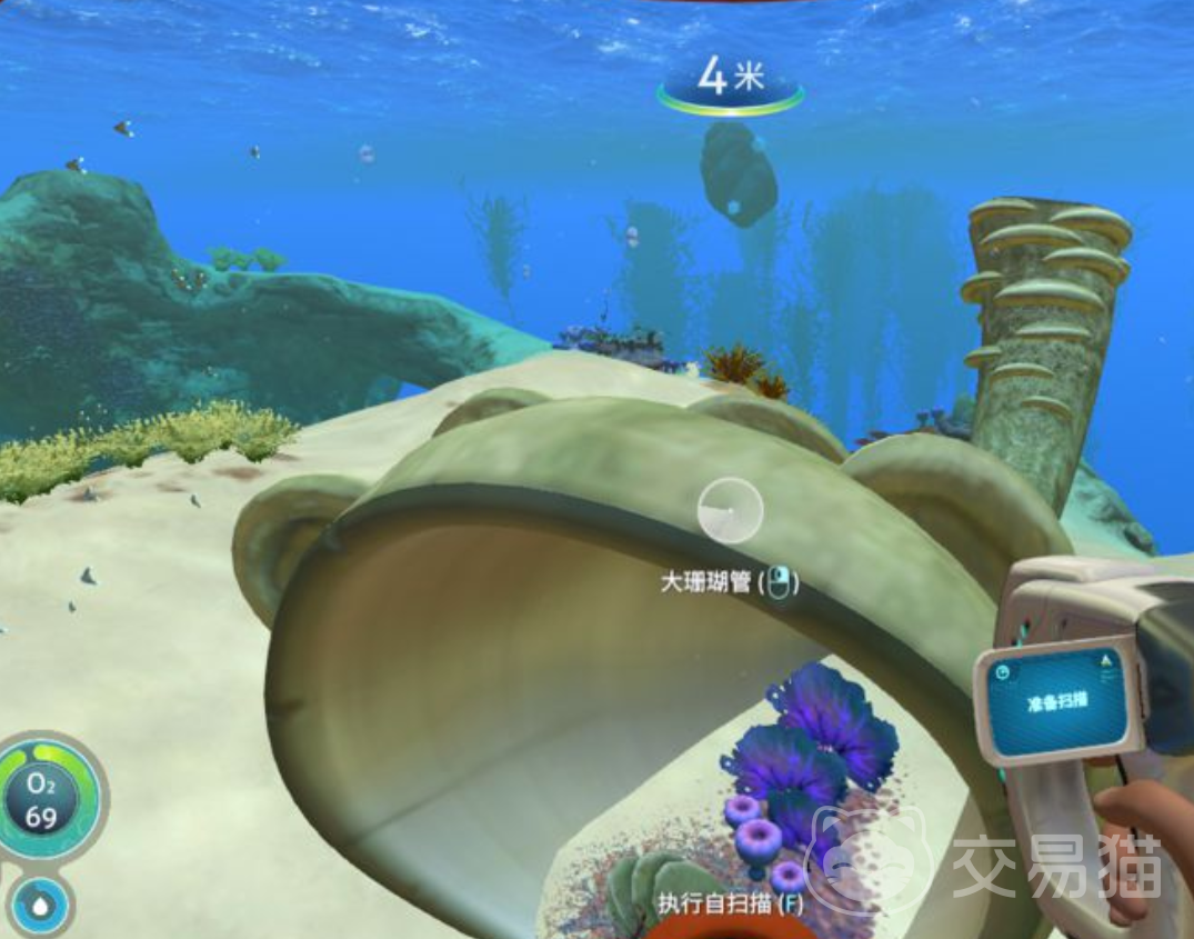 盘状珊瑚本身不可直接采集,它仅作为“巨型珊瑚管”的切割产物随机掉落。该生物母体广泛存在于出生点附近的浅海带,水深通常低于100米,光照充足、地形平缓、无高威胁生物出没。新手阶段无需潜水器或强化装备即可自由探索,建议以初始逃生舱为圆心,向四周扇形推进,重点关注岩层边缘与沙地交界处——此处是巨型珊瑚管最密集的自然栖息区。