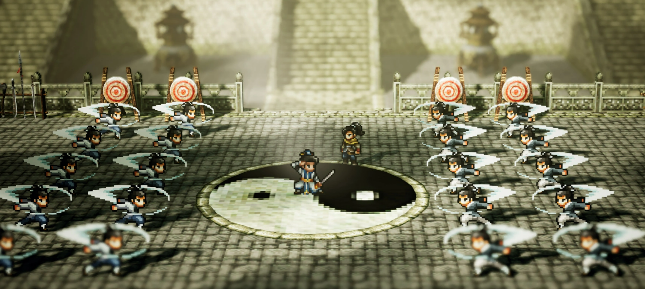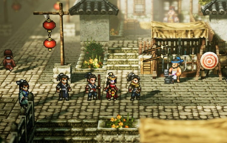 视觉层面采用精细像素美术风格,以低分辨率呈现高表现力的场景细节与角色动态。辽城雪夜、江南烟雨、塞北古道等地图均通过色调层次与粒子特效强化沉浸感。人物塑造注重反差性:表面谦和者或藏机锋,看似疏离者反成生死之托,深度还原武侠世界中人情冷暖与立场流动的真实质感。