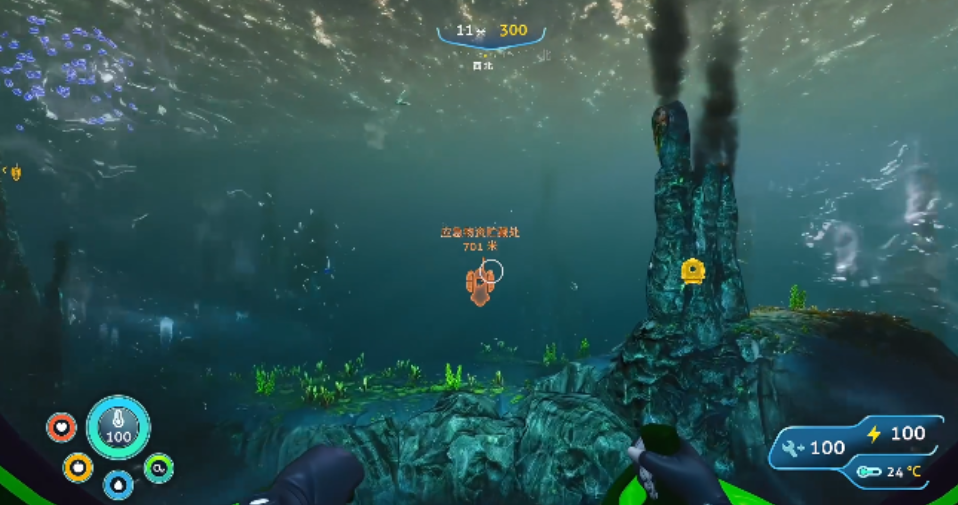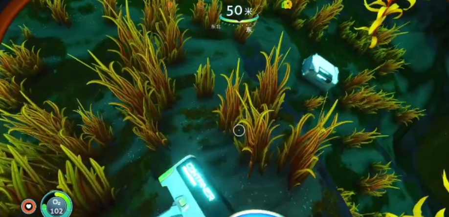 中期阶段(载具与工具逐步升级):重点转向荷叶区正下方的红蘑菇生态区。此处磁铁矿以密集矿脉形式嵌于岩层裂隙中,平均深度适中,普通潜水服配合一级深潜器即可抵达。但受限于环境特性——悬浮颗粒导致能见度极低,肉眼识别困难。因此务必提前将扫描仪升级至满级探测范围,并携带深海切割器辅助定位与开采,避免无效巡游消耗氧气与时间。